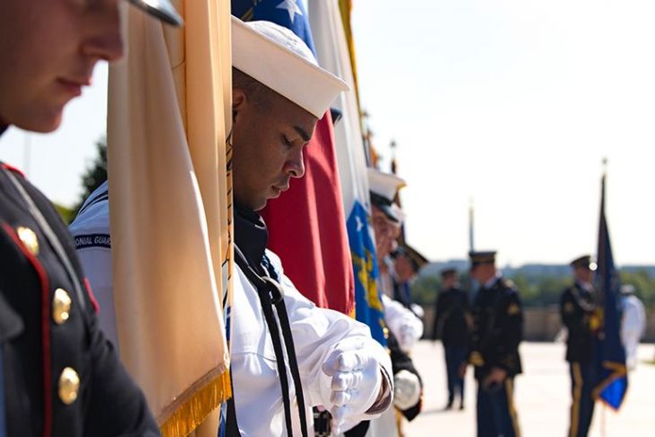 Service members participate in a welcome ceremony at the Pentagon. Photo credit: Army Sgt. Amber I. Smith, DOD