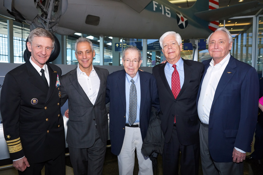 Vice Adm. Philip H. Cullom, deputy chief of naval operations for Fleet Readiness and Logistics, joined Chicago Mayor Rahm Emmanuel, 14th Ward Alderman Edward Burke, Aviation Commissioner Ginger Evans, along with 36 members of the O’Hare family at O’Hare International Airport to commemorate Butch O’Hare’s legendary achievement.